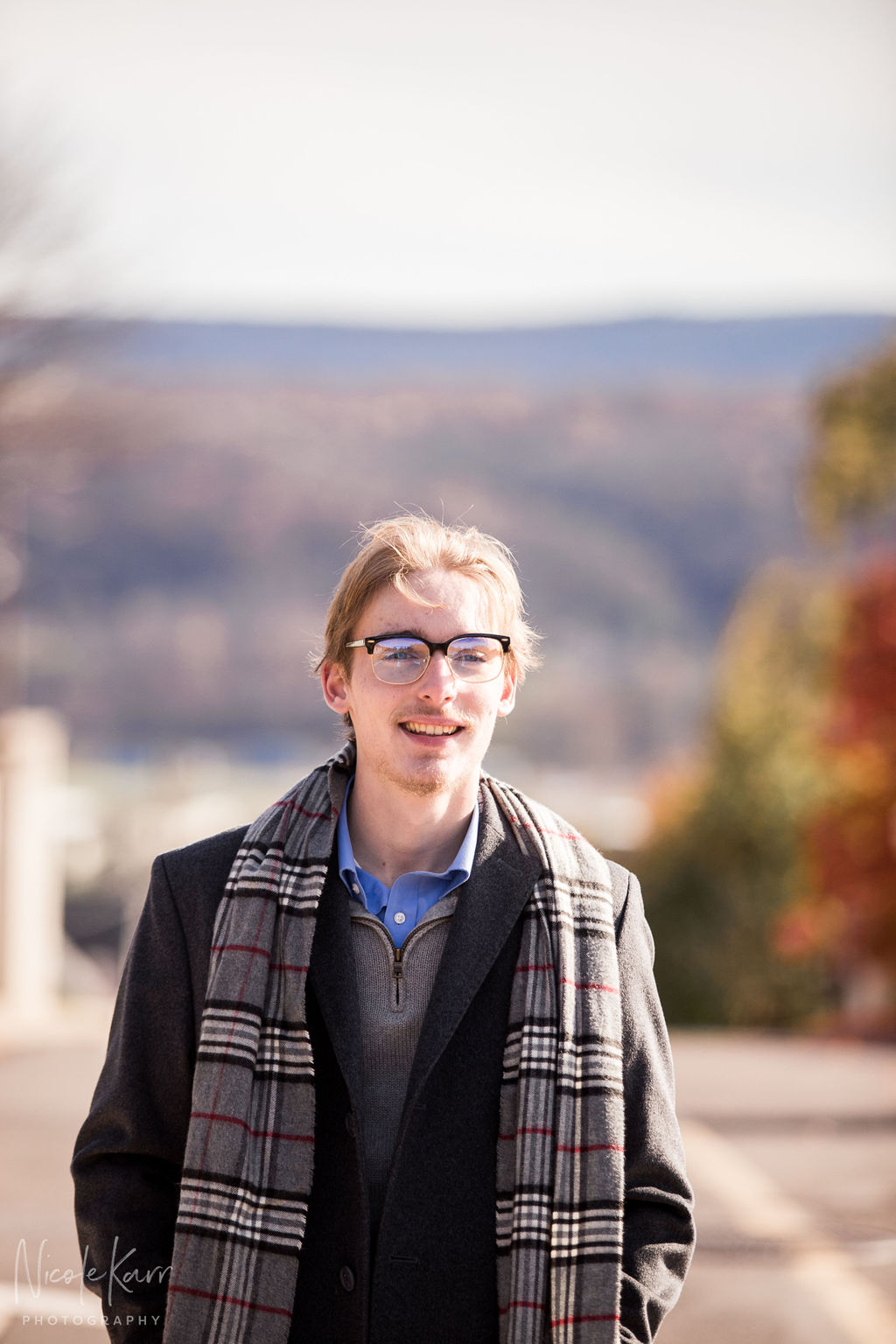 I’ve known Charlie’s mom since we had little babes and she invited me to be a part of a Bloomsburg based mom’s group, which was a weekly delight. Our kids are much much bigger now, as evidenced by her son graduating from high school this Spring! Charlie looked every part the college kid as we explored the campus of Bloomsburg University in a bitterly cold November day. Senior photos can be done any time of the year that suits you or your schedule. Good luck at college, Charlie!!