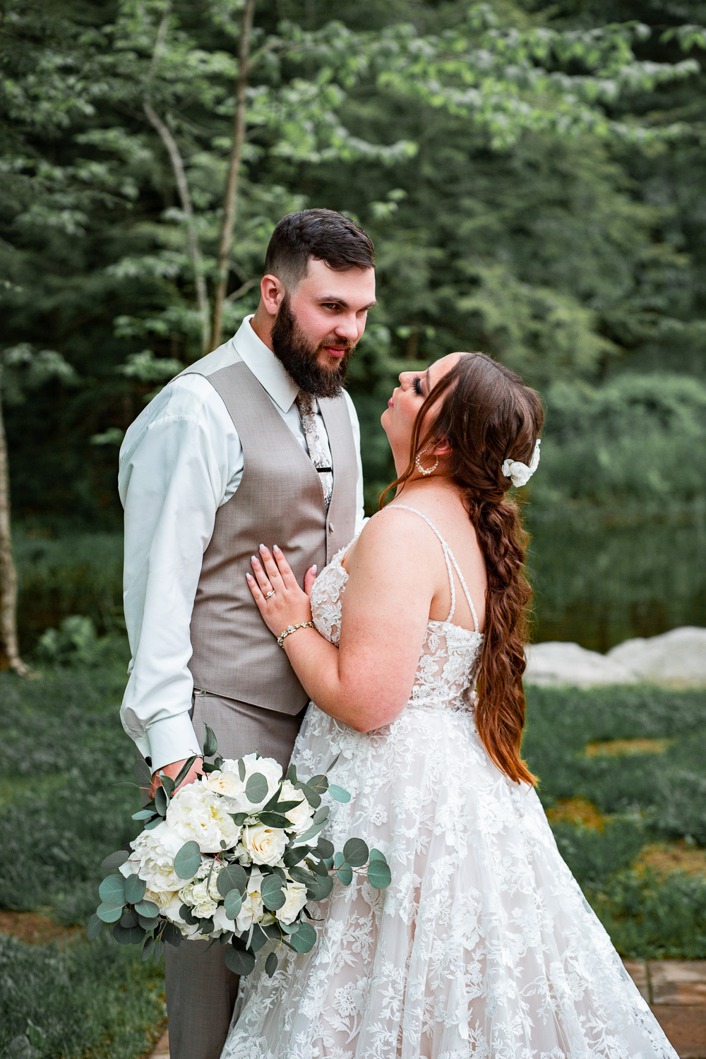 Angela + Austin were married in May at the beautiful Catalpa Grove at Lakewood Park in Barnesville, Pennsylvania ( Schuylkill County). It was a fairly rainy and humid day, however there are plenty of covered patios- and the barn is gorgeous and immaculate, as well as well lit, so we did just fine and didn’t even need to use umbrellas.