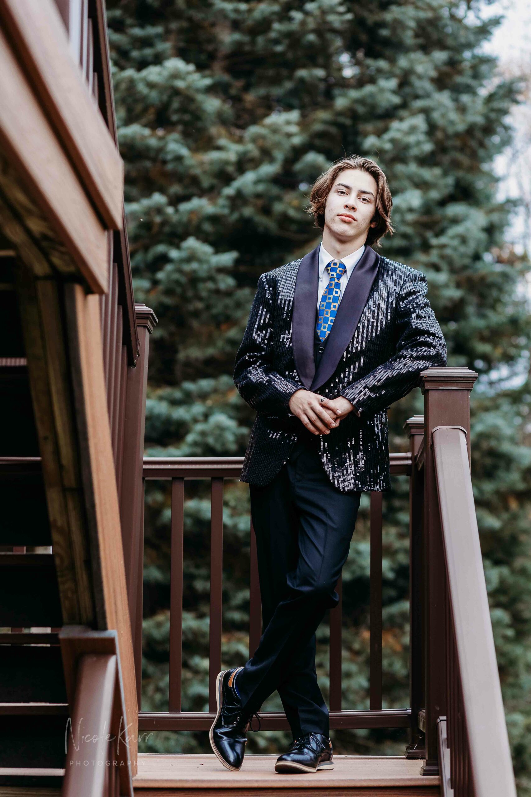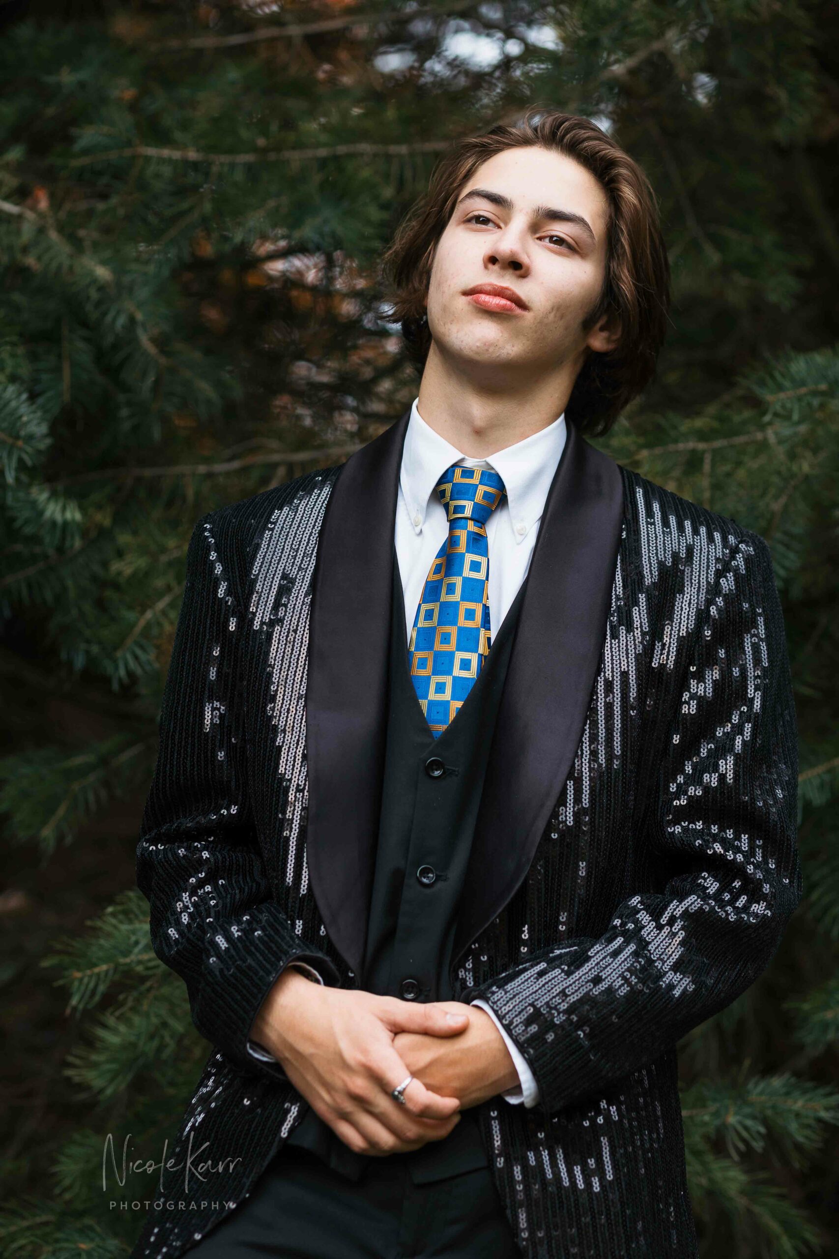 In October i was lucky enough to meet up with Kade and his mom and girlfriend to take senior portraits! We started at a beautiful poroperty with colorful Maple trees and a pond where the kids donner their sequins from homecoming where Kade was KING! He also changed into a more casual look and posed with the side by side that he likes to drive.