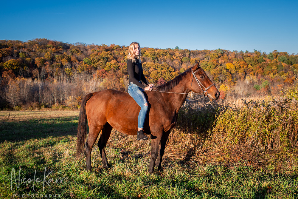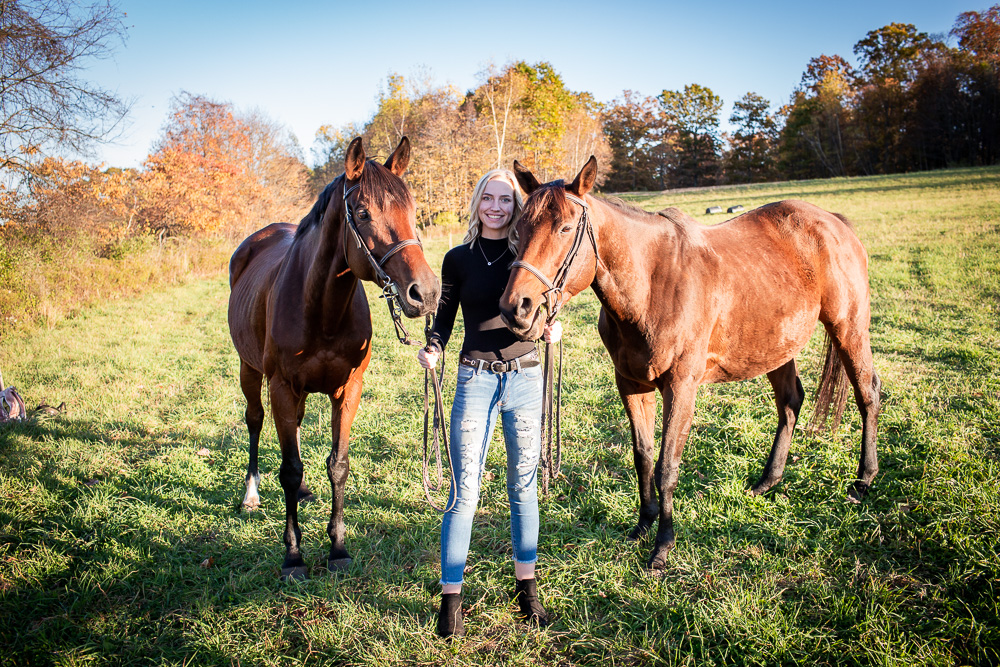 Sessions at the barn are the tops in my opinion, so it was very fun shooting with Juliette at Royal Rock Equestrian Center near Harvey’s Lake for the second half of her senior photos. We were able to work with two of the owner’s thoroughbreds who are among J’s favorite horses!