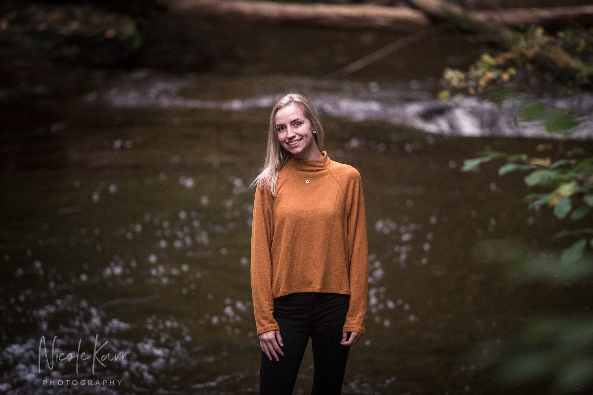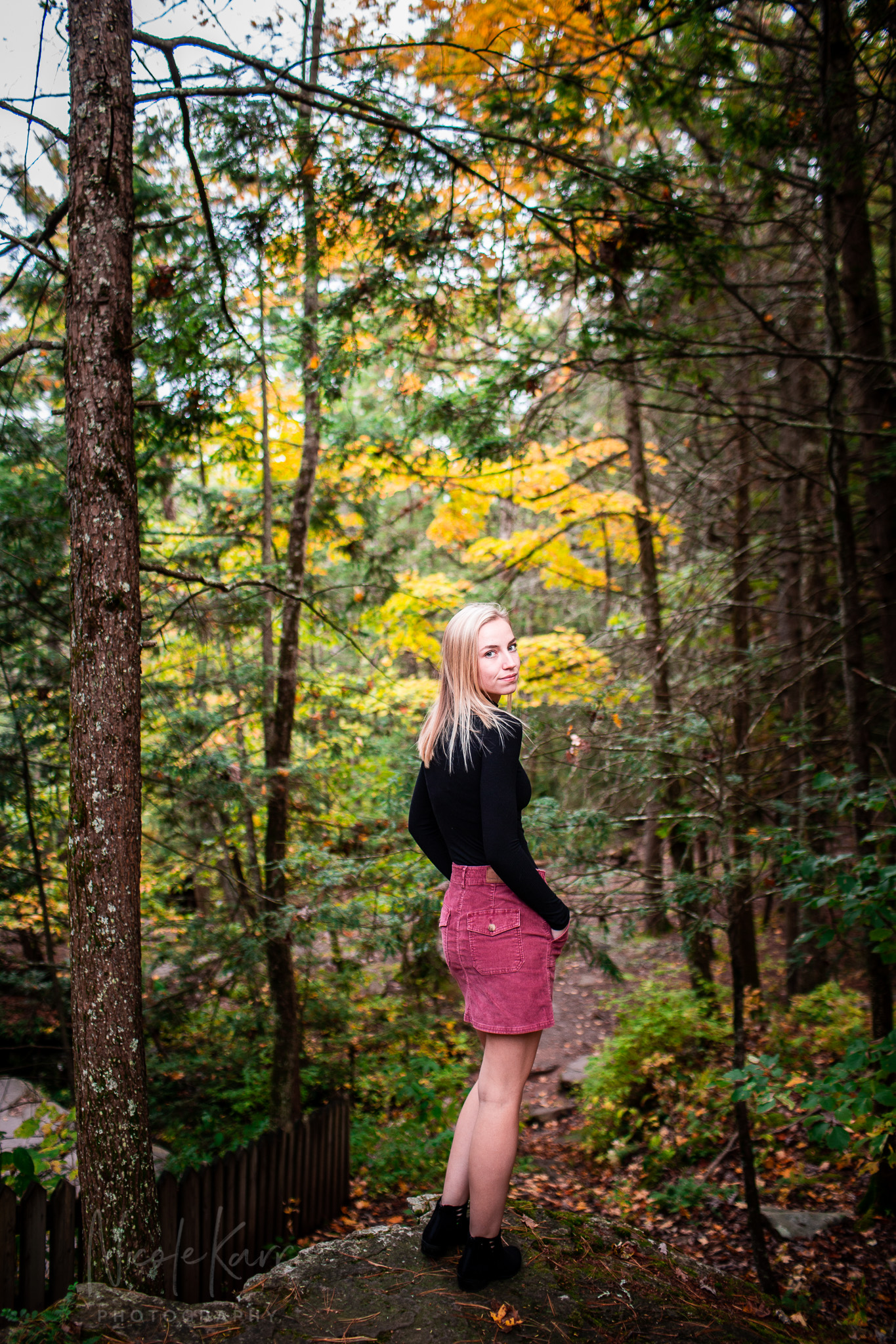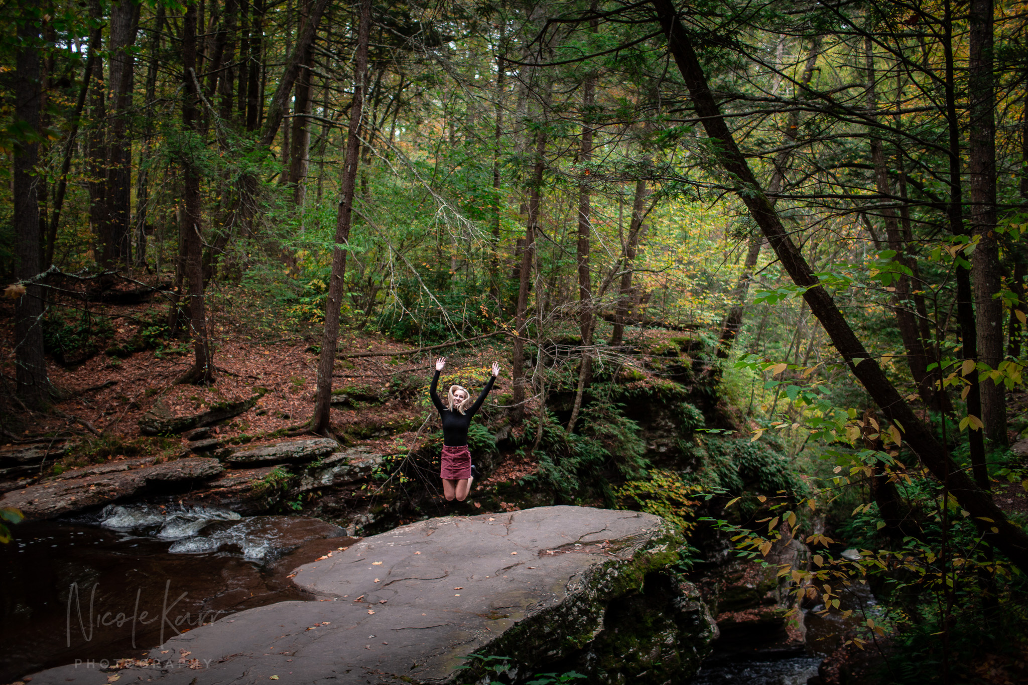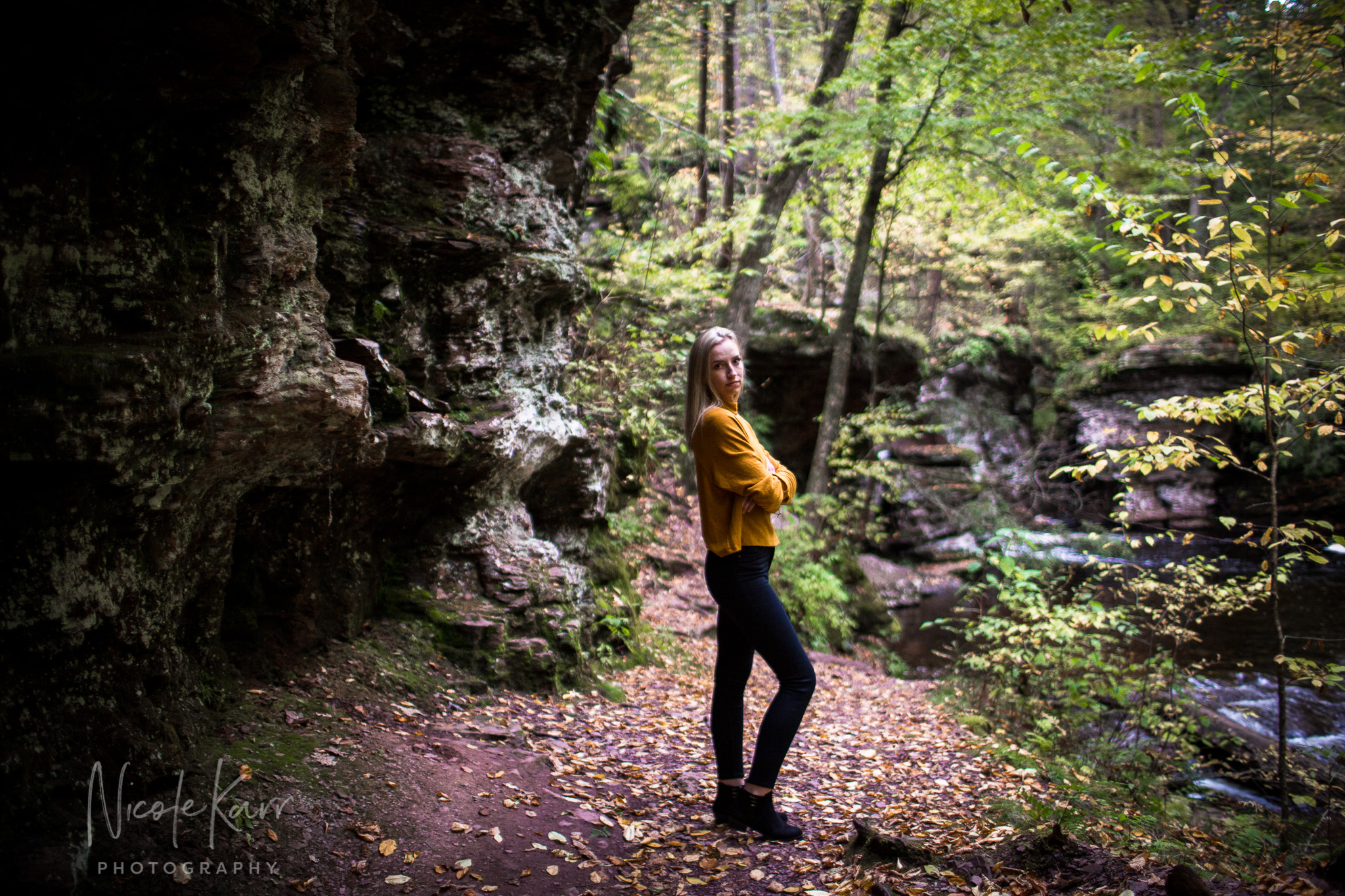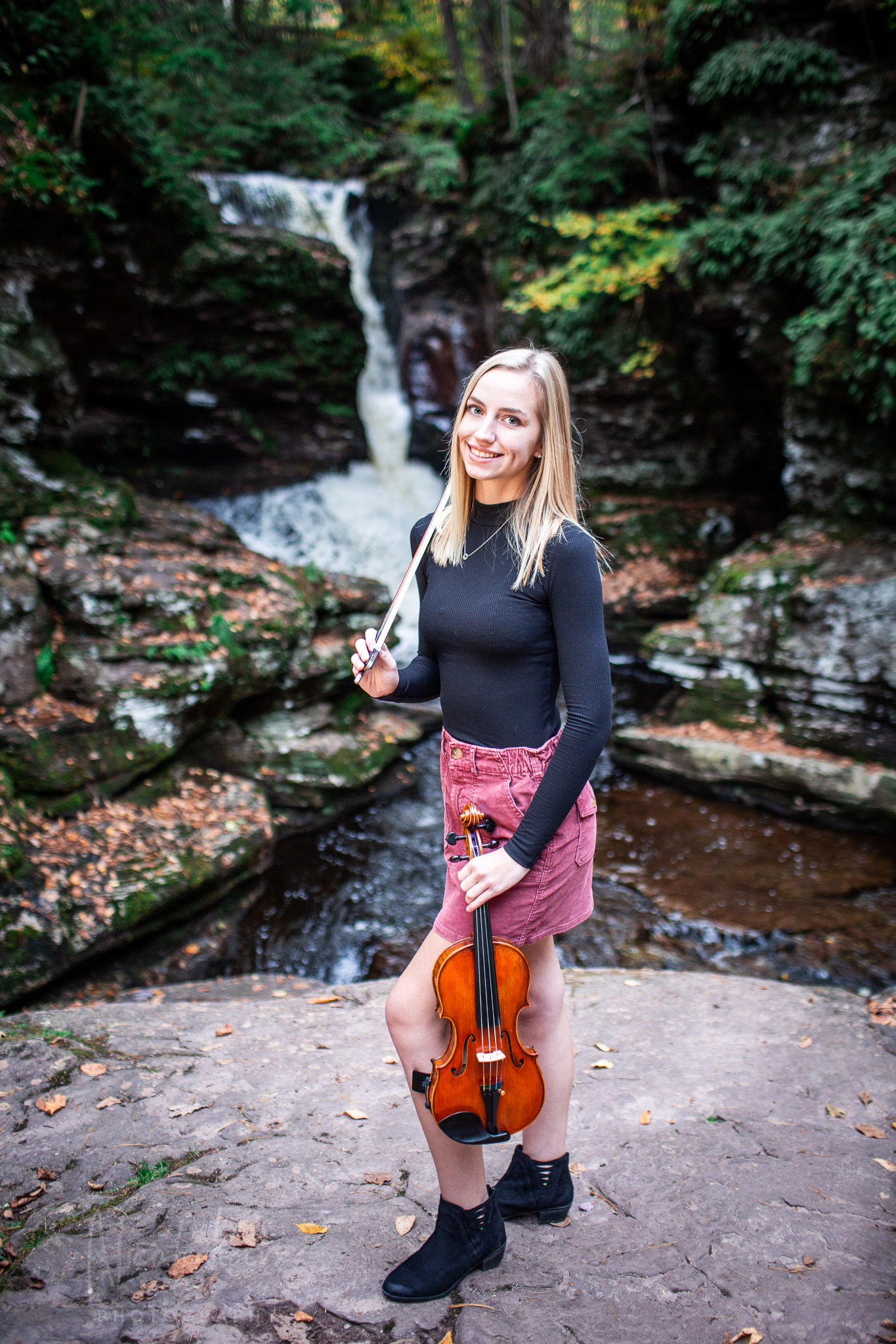 This autumn afternoon we grabbed a window of good weather and went looking to see what we could find with J. at Ricketts Glen State Park. She brought her violin and we checked out the first bridges and beautiful waterfall, we strolled and explored – and discovered some great light and golden tones near the (gasp) parking lot.